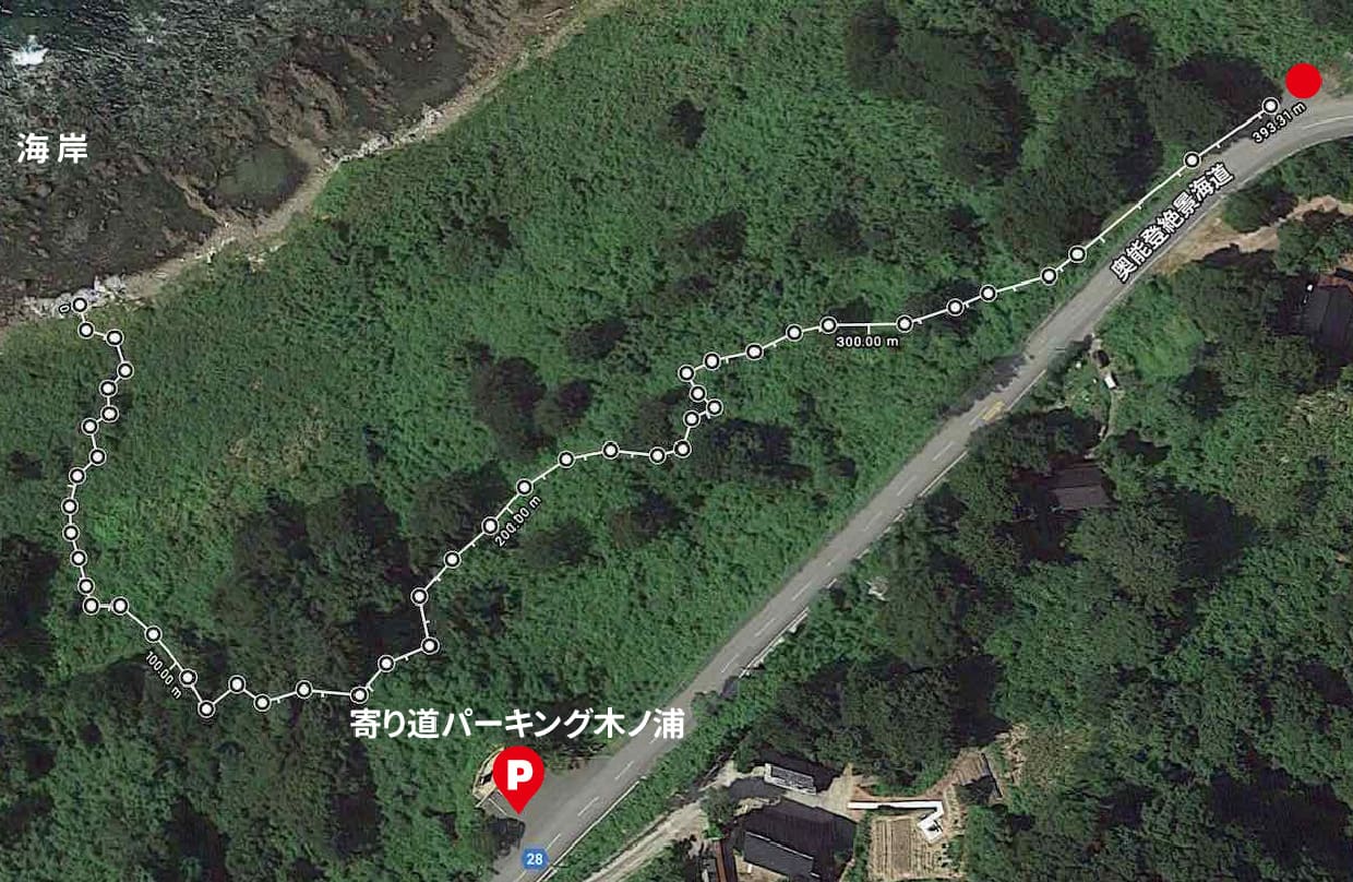 (写真4枚目)「P」と表示部分が「寄り道パーキング木ノ浦」ですが、右上の場所にも5台程車を停めれる場所があり、そこから海岸へ片道約400Mを徒歩でしか行けず、行きは下り坂でまだいいが帰りはゴミを持って登って来ないといけないので大変です。徒歩での道も整備されていないので、夏は草木が生い茂り、草木を刈りながらでないと進めません。寄り道パーキング木ノ浦から直接海岸へ降りる道は無く、右上の場所も5台程しか車を停めれないので、寄り道パーキング木ノ浦から徒歩で行かねばなりません。